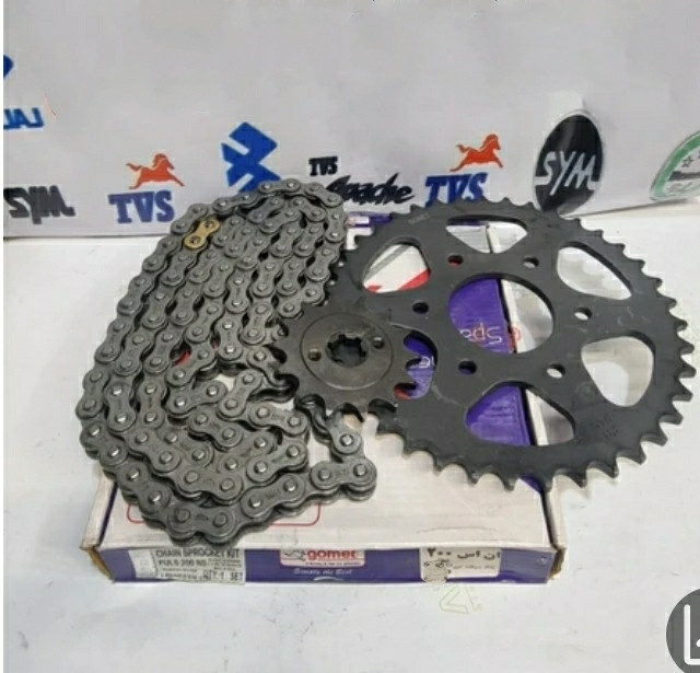 ست دنده ( طبق ) زنجیر جلو و چرخ عقب همراه با زنجیر موتور پالس NS 200و rs200 ان اس هندی درجه یک